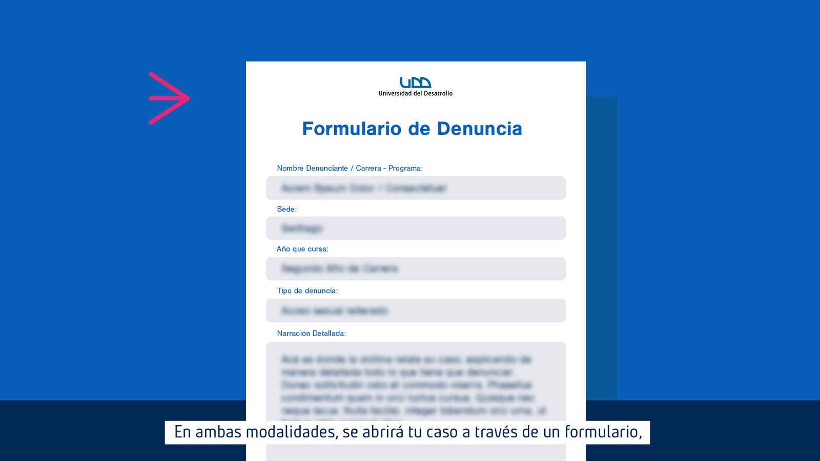 This project involved creating an animated explainer video for the Universidad del Desarrollo (UDD) to outline the reporting channels available under their Comprehensive Policy Against Sexual Harassment, Violence, and Gender Discrimination. These channels are accessible to students, faculty, staff, and service providers within the university.
